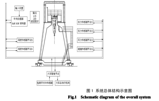 起重機(jī)用戶關(guān)心的涉及到安全方面的工況參數(shù)主要有:主鉤與副鉤的起重載荷和起升高度、大梁的 起重力矩、工作幅度、鋼絲繩狀況、風(fēng)速(力)大小、起重過程中載荷振動(dòng)情況以及大、小車的各種信 息(如輪子與軌道的接觸狀況、電動(dòng)機(jī)轉(zhuǎn)速參數(shù)、溫度)等。如何對(duì)這些工況參數(shù)進(jìn)行巡回采集、算法 處理,并實(shí)時(shí)輸出控制和提示是本系統(tǒng)設(shè)計(jì)的關(guān)鍵所在。
